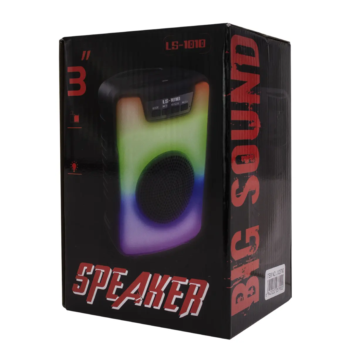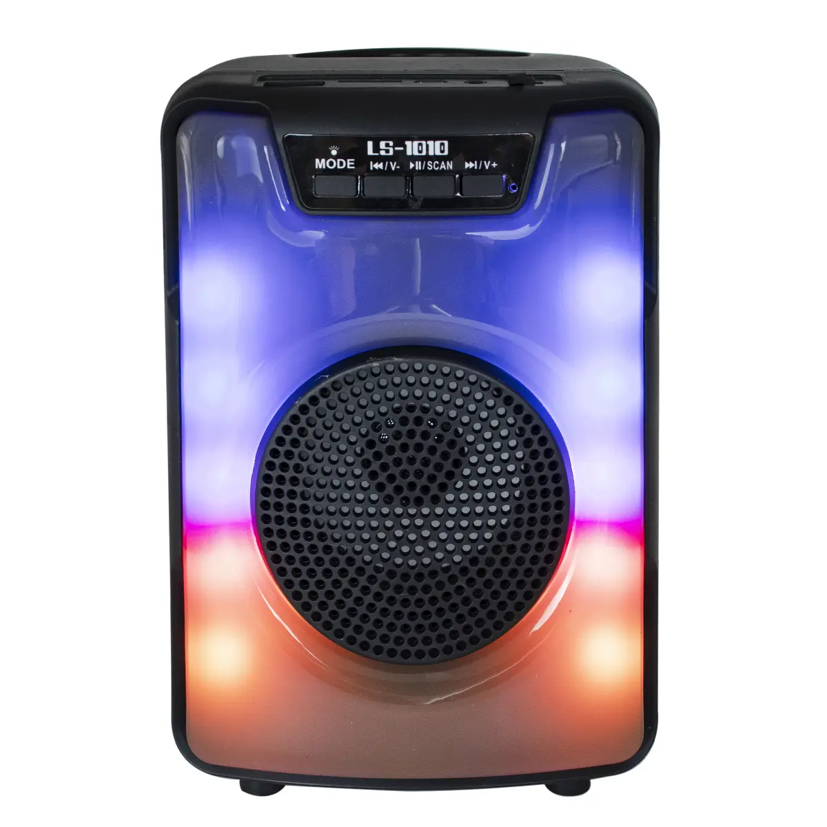 Un parlante compacto y práctico, ideal para llevar música a cualquier parte. Su tamaño portátil no le impide ofrecer buen sonido y efectos de luz que acompañan tus canciones.